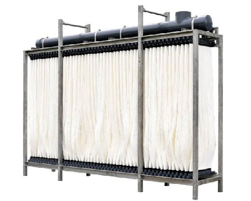 膜組件垂直安裝在膜架內(nèi),由處理水量決定膜組件個(gè)數(shù)