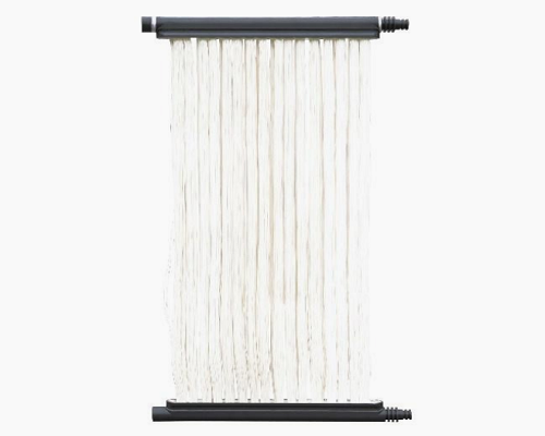 美能研發(fā)的SMM-1015 MBR簾式膜組件,適合用于集裝箱污水處理及淺水污水處理場所,這款膜元件是一款雙端產水類型MBR膜,膜絲使用PVDF材質,封端材質使用的是環(huán)氧樹脂,膜絲孔徑均勻,過濾精度高,在進水水質符合要求的情況下,過濾精度值為0.04um。